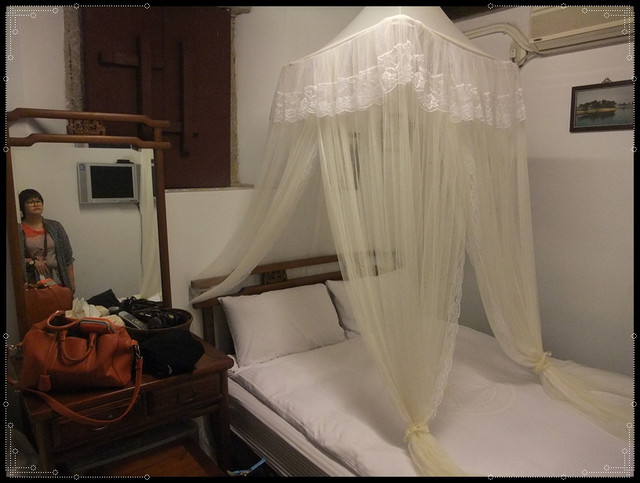 房間裡的單人床還有雙人床。特別的是雙人床上有很浪漫的紗帳。我猜應該是夏天要防蚊用的。