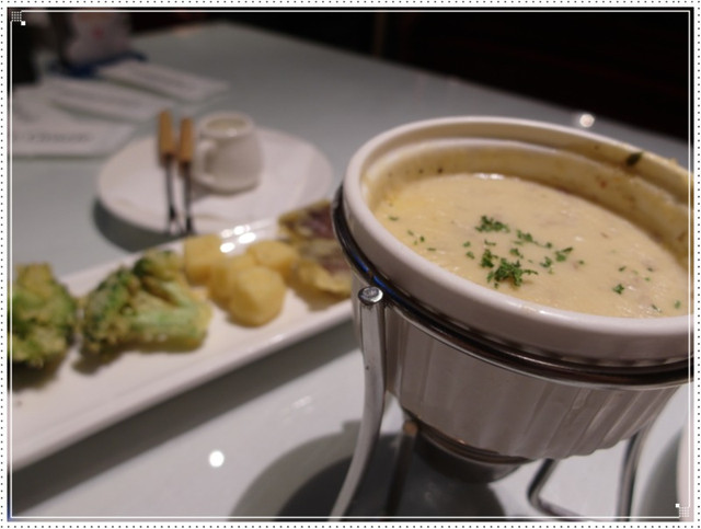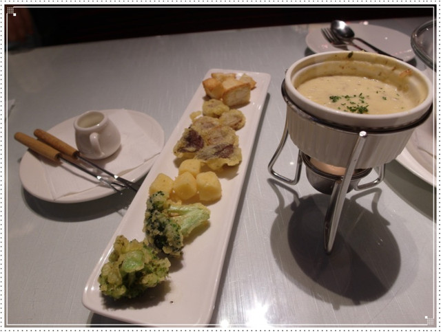 老實說。我還蠻失望的。炸好的東西早就冷透了。起司鍋又用小燭火加熱。根本不熱。
