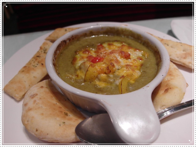 綠咖哩起士烤鮮魚。綠咖哩的味道還不錯。魚肉也OK。不過跟旁邊的烤餅一起搭。不太合味!